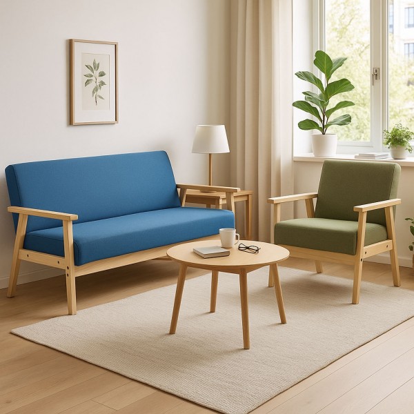 La struttura completamente realizzata in legno di abete non trattato conferisce al set un aspetto autentico e una grande resistenza nel tempo. I cuscini imbottiti, rivestiti in tessuto antimacchia, assicurano comfort e praticità, rendendo questo set perfetto per un utilizzo quotidiano.