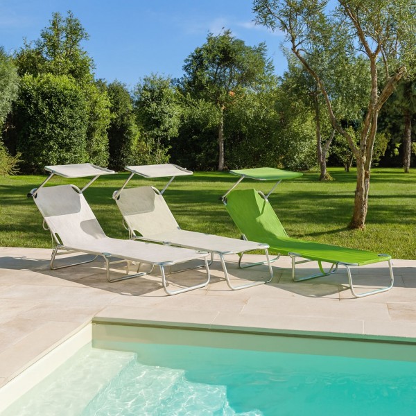 Goditi il sole in spiaggia, in piscina o in giardino con il nostro lettino pieghevole in alluminio, leggero e resistente!