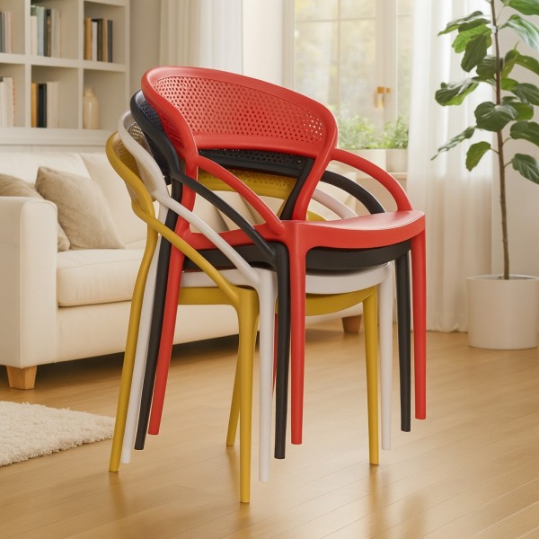 Eleganti per una cucina moderna e originali per una sala da pranzo arredata in stile minimal, utilizzabili anche in terrazze e giardini grazie alla protezione a raggi UV. La struttura in polipropilene di queste sedie le rende elementi uniche nel loro genere. Il tutto con forme riconoscibili e senza tempo.